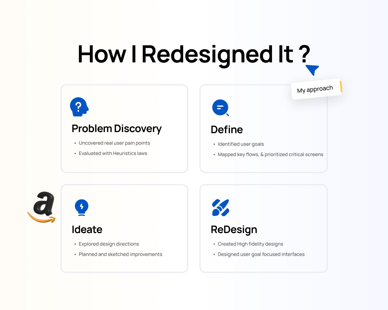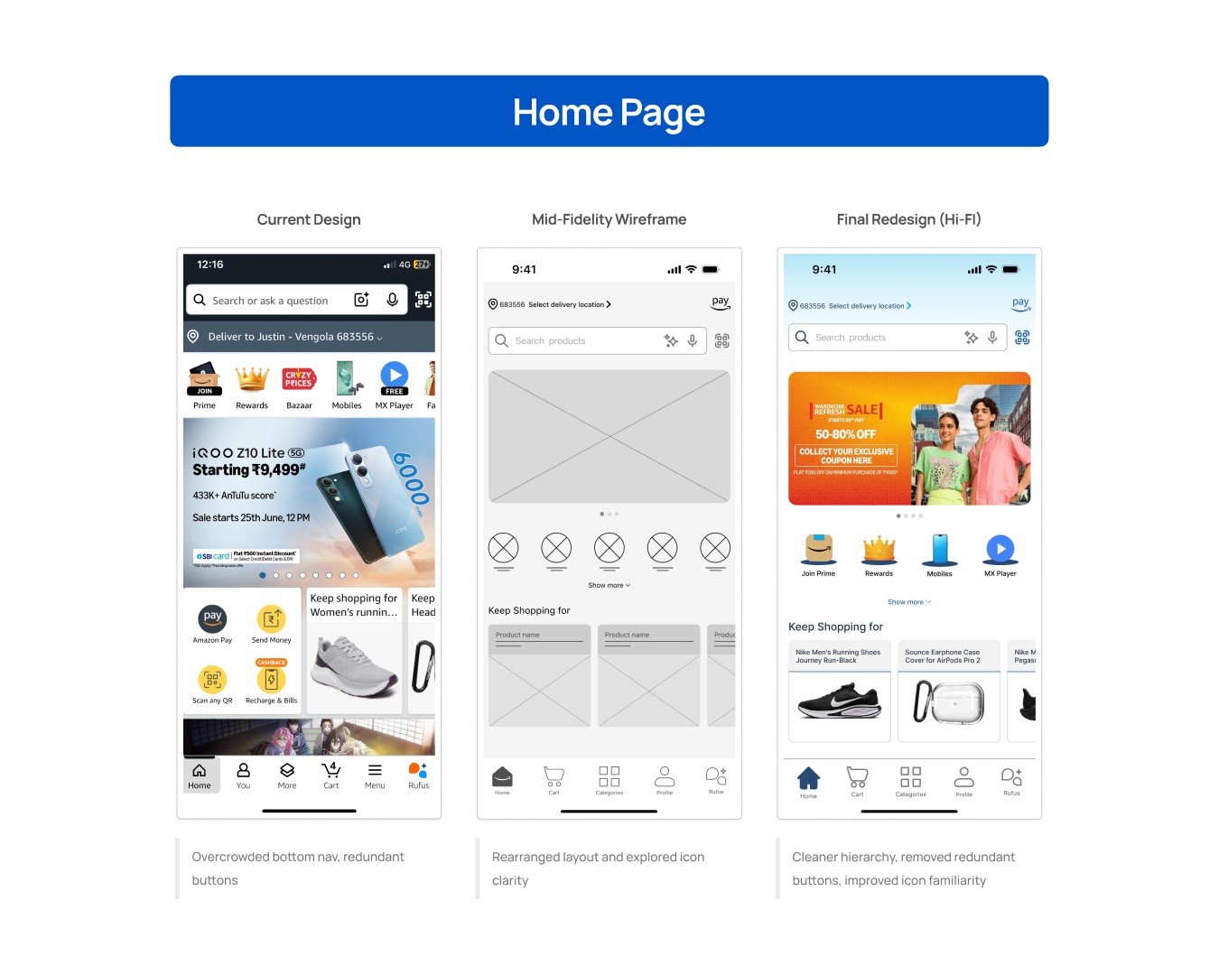 This case study focuses on redesigning the Amazon mobile shopping experience to improve usability, clarity, and visual hierarchy.